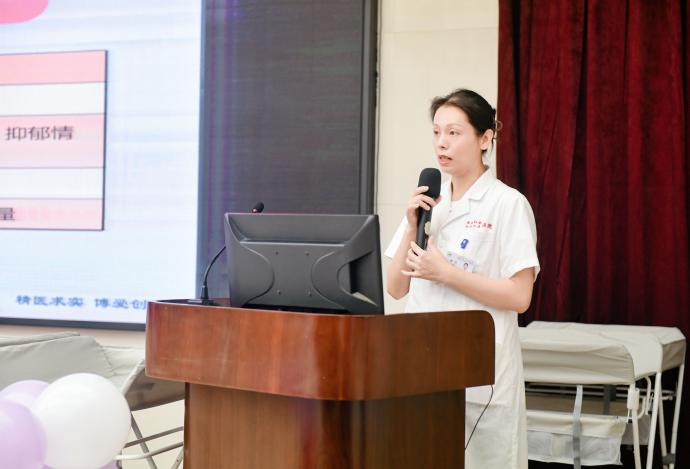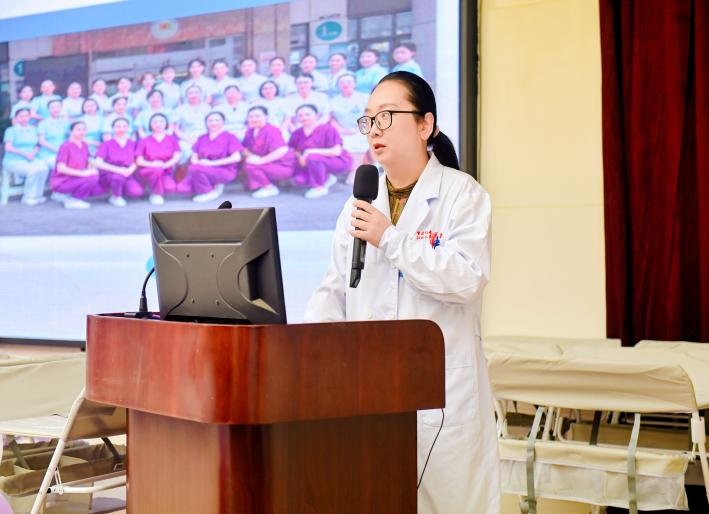 活动中妇产科主任龚旭华向大家介绍了我院妇产科医疗团队实力、诊疗特色,还通过照片展示的方式,直观呈现了科室病房的温馨环境与产房的专业配置。