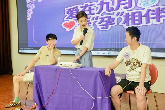 为打破传统课堂的沉闷感,活动特别在课间设计了趣味游戏、抽奖环节等互动环节,让准妈妈和准爸爸都参与其中。大家在轻松愉快的氛围中巩固孕期知识、交流孕育心得,进一步增强自然分娩的信心。本次活动还创新设置“准爸爸分娩疼痛体验营”,借助专业仪器模拟分娩阵痛。多位准爸爸主动参与体验,并在体验后感慨 “深刻理解了妻子的艰辛”,并现场承诺将全程陪伴孕期、全力支持妻子,真挚的分享引发全场共鸣,温馨感人。
