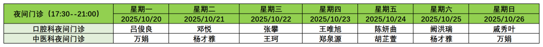 10月20日-26日夜间门诊安排