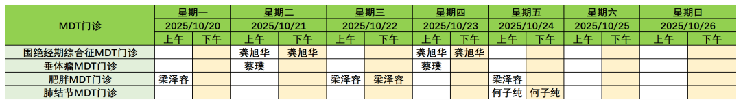 10月20日-26日日间门诊安排