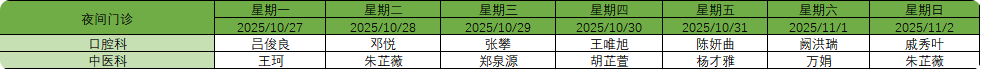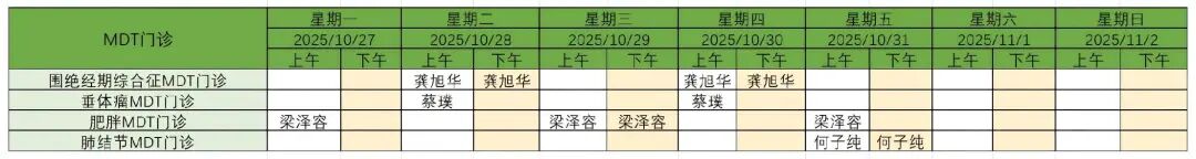 为方便您合理安排就诊时间,现将我院10月20日-26日日间门诊出诊、夜间门诊、护理门诊、健康宣教、多学科联合(MDT)门诊安排公示如下: