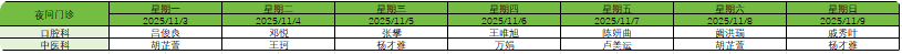 11月3日-9日日间门诊安排