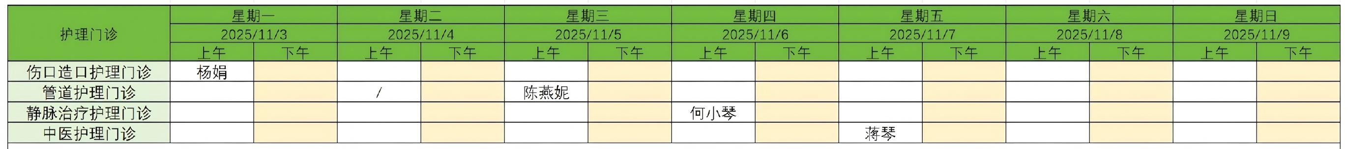 11月3日-9日护理门诊安排