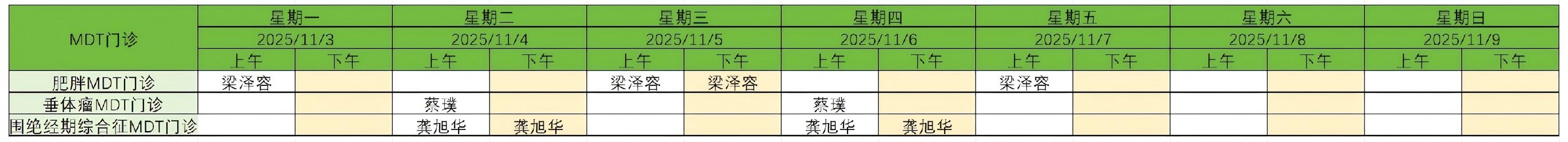 11月3日-9日多学科联合(MDT)门诊安排
