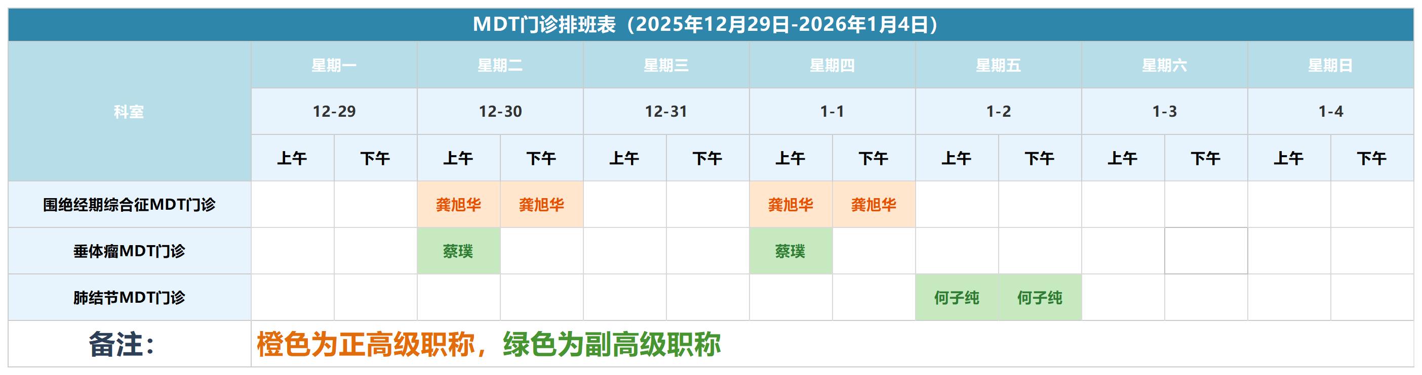 12月29日-1月4日多学科联合(MDT)门诊安排
