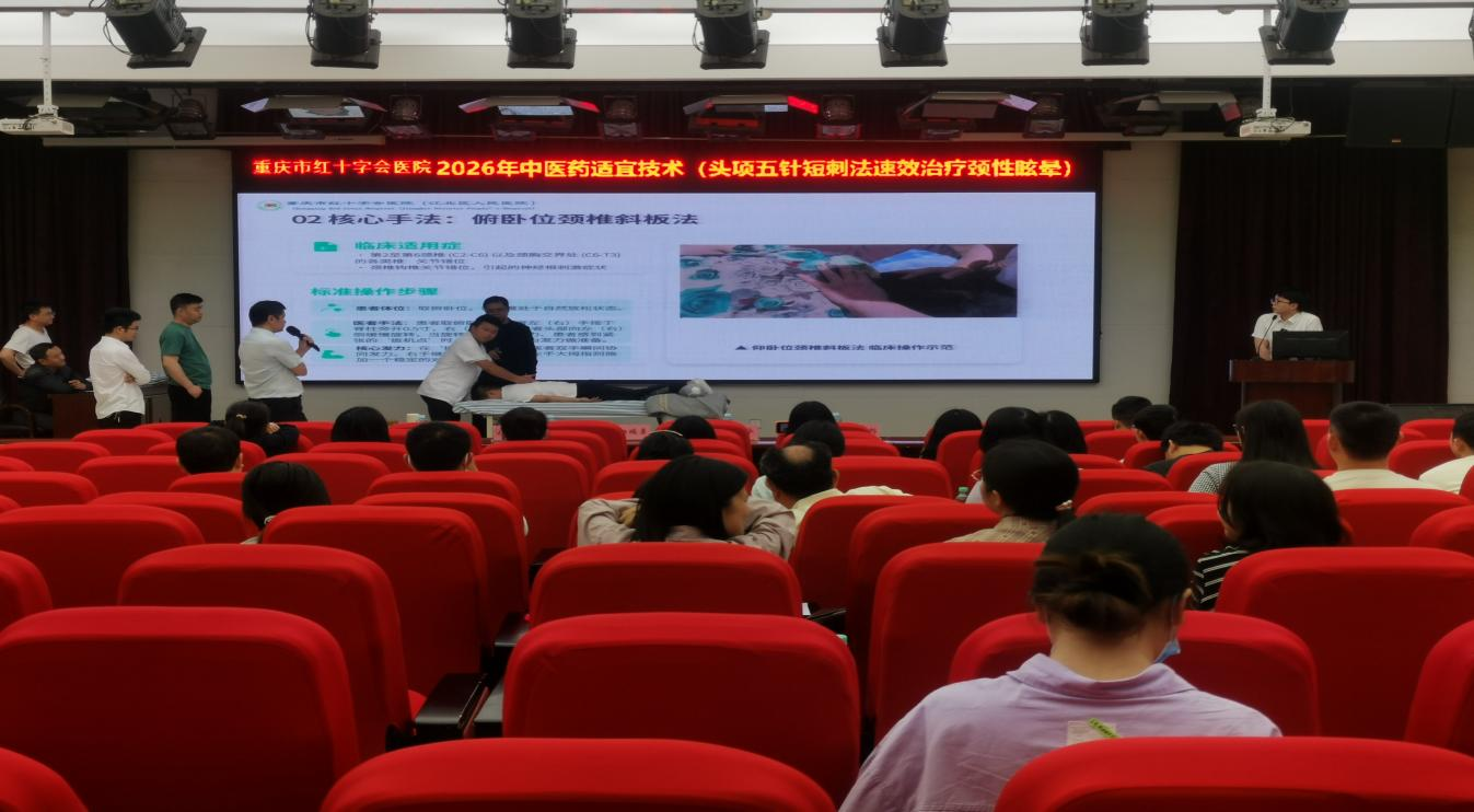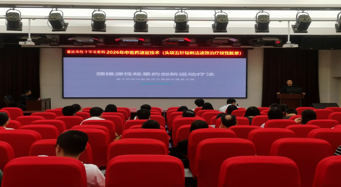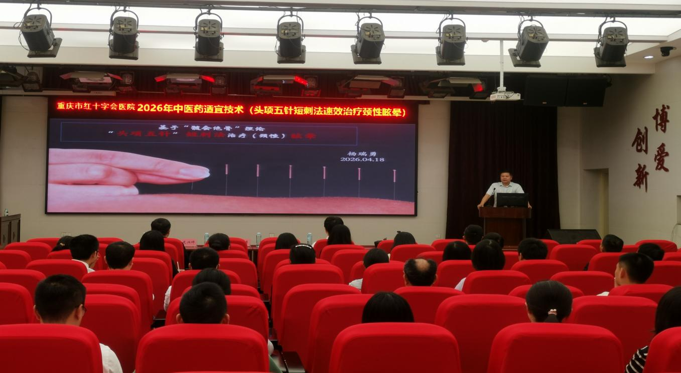 春风送暖,万物竟发。为深入贯彻《重庆市中医药振兴发展重大工程实施方案》精神,全面落实2026年中医药适宜技术推广任务,切实提升基层中医药服务能力,4月18日,由重庆市红十字会医院主办的“2026年中医药适宜技术(头项五针短刺法速效治疗颈性眩晕)推广培训班”在医院学术报告厅隆重举行。