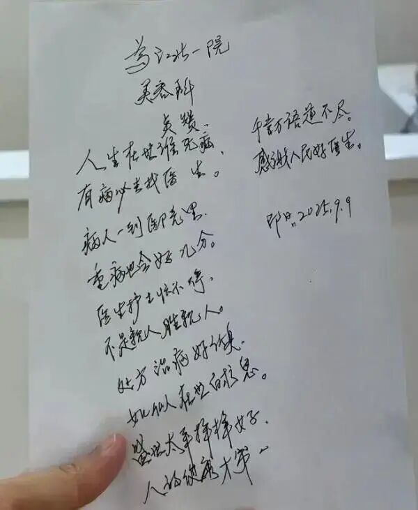 【临床动态】我院医疗美容科获病人赠诗感谢