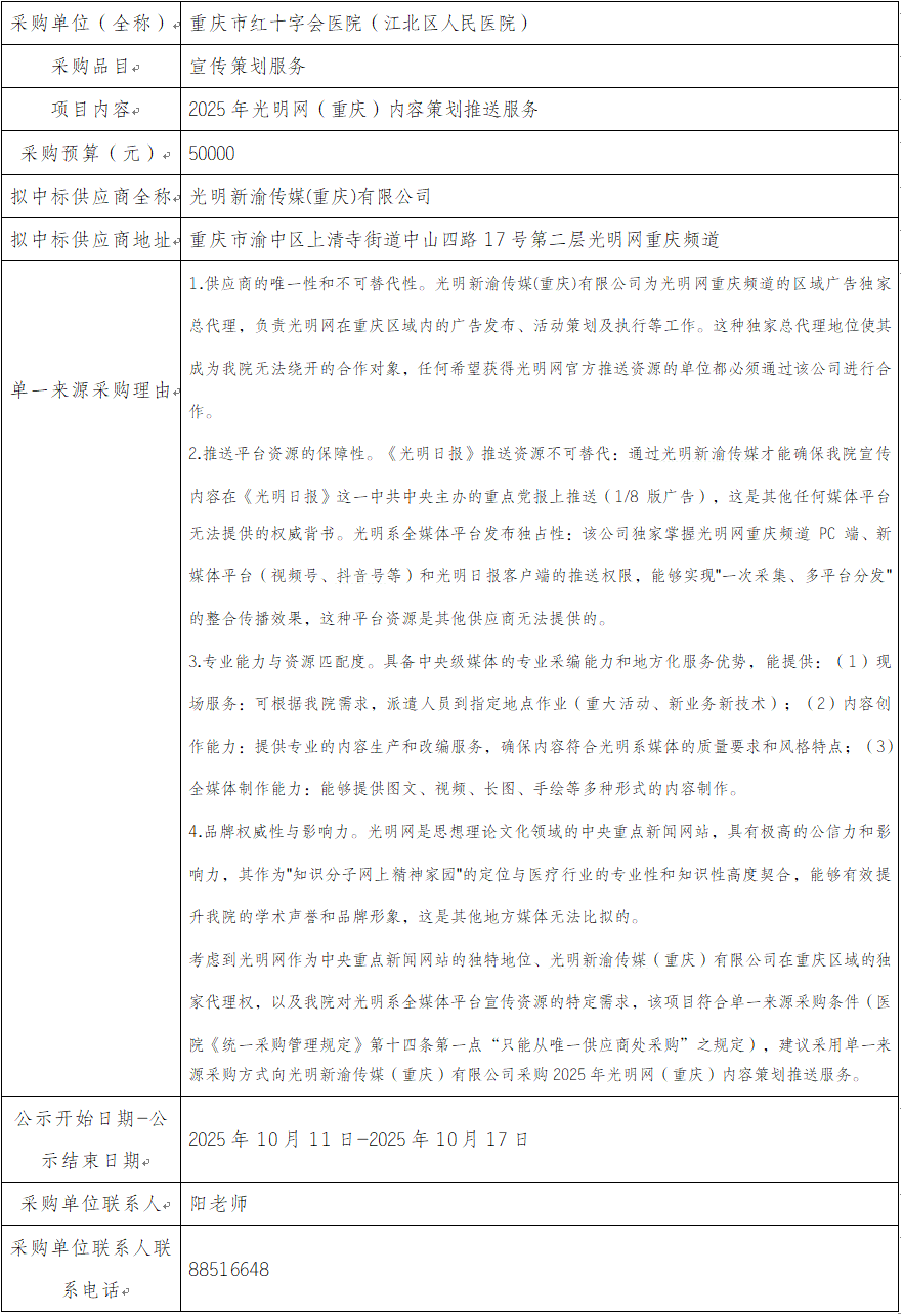 2025年光明网(重庆)内容策划推送服务单一来源协商公示