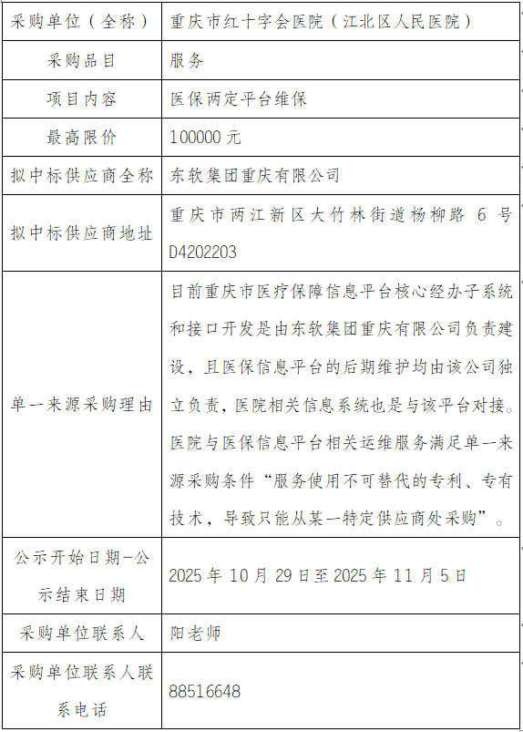 医保两定平台维保单一来源协商公示