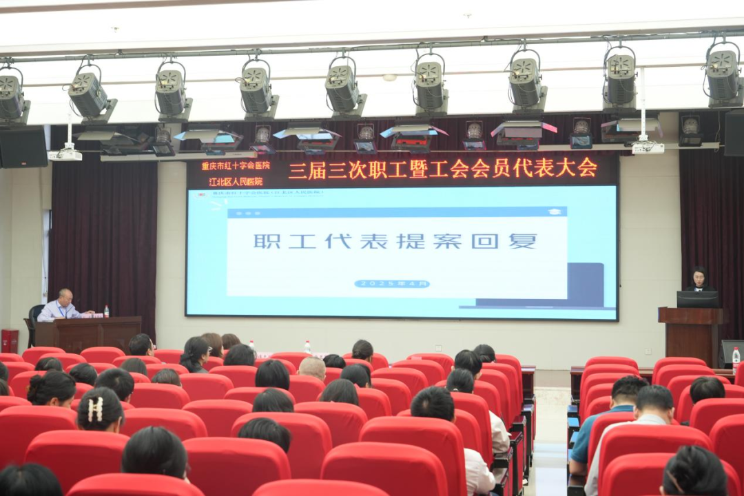 2025年4月24日,重庆市红十字会医院(江北区人民医院)三届三次职工暨会员代表大会在15楼学术会议厅召开。院班子成员、职工代表及特邀代表共计100余人参加。会议由院工会主席刘宇主持。