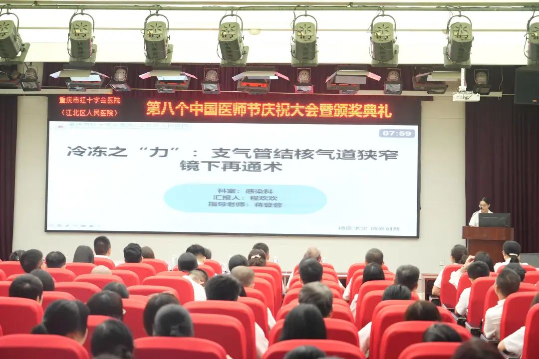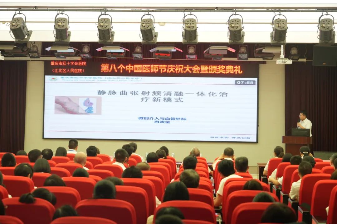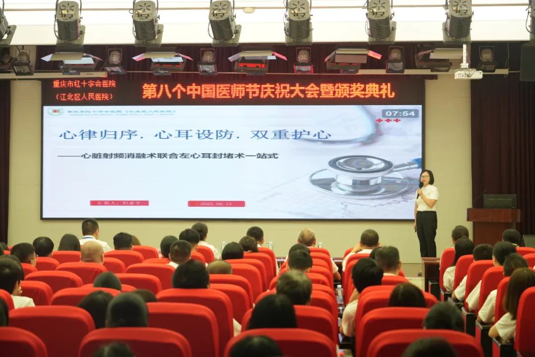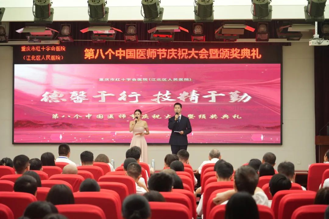 为庆祝第八个中国医师节,2025年8月15日,重庆市红十字会医院(江北区人民医院)在学术会议厅隆重举行庆祝活动暨颁奖典礼。本次活动围绕“德馨于行,技精于勤”主题,倡导以高尚医德为基,以勤勉精进为径,持续提升服务质效与核心竞争力。院领导、中层干部、获奖医师和医师代表共计200余人参加了活动。