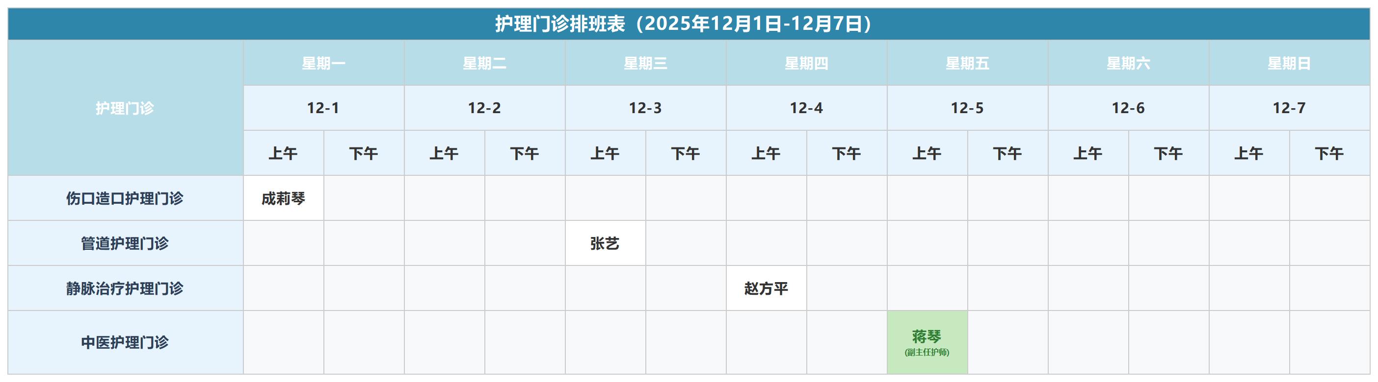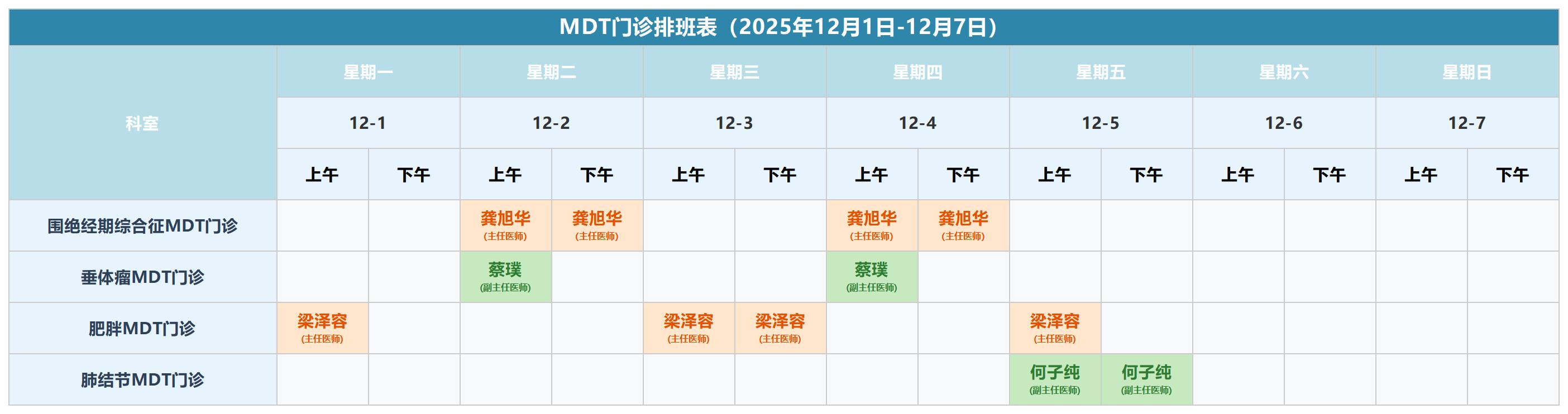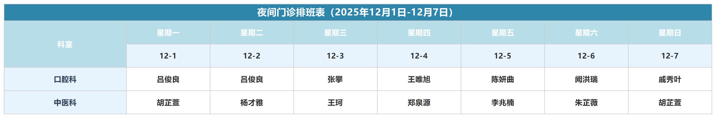 为方便您合理安排就诊时间,现将12月1日-7日我院日间门诊出诊、夜间门诊、护理门诊、健康宣教、多学科联合(MDT)门诊安排公示如下: