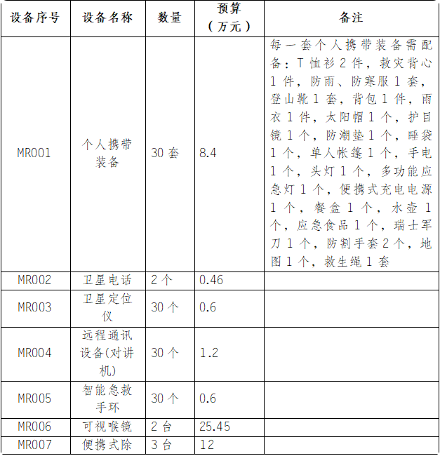 注:本次采购设备需满足野外救援实战环境要求,所有设备(含电源系统)须具备轻便携带、电池续航能力强、支持户外应急供电或扩展供电功能,确保在无外部电源情况下可连续稳定运行。