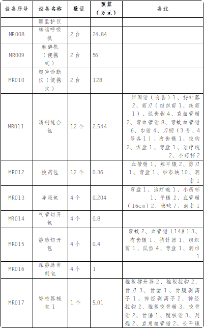 (4)请各供应商根据设备清单提供技术参数以及进行设备报价,报价包含完成本项目的所有医疗设备、设备配件、系统、维保、人工、运输、安装调试、税金、利润以及验收等所有费用的总和。