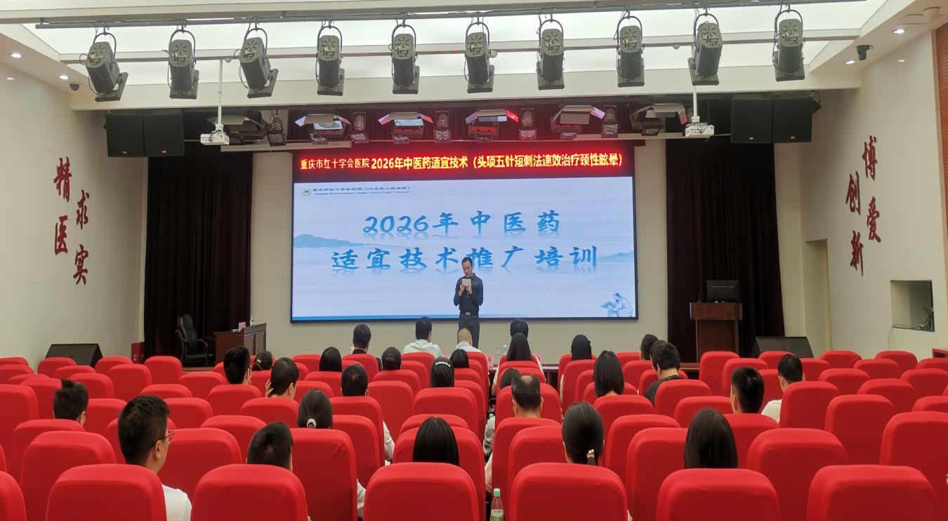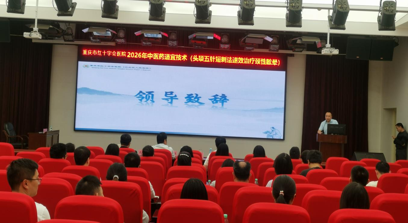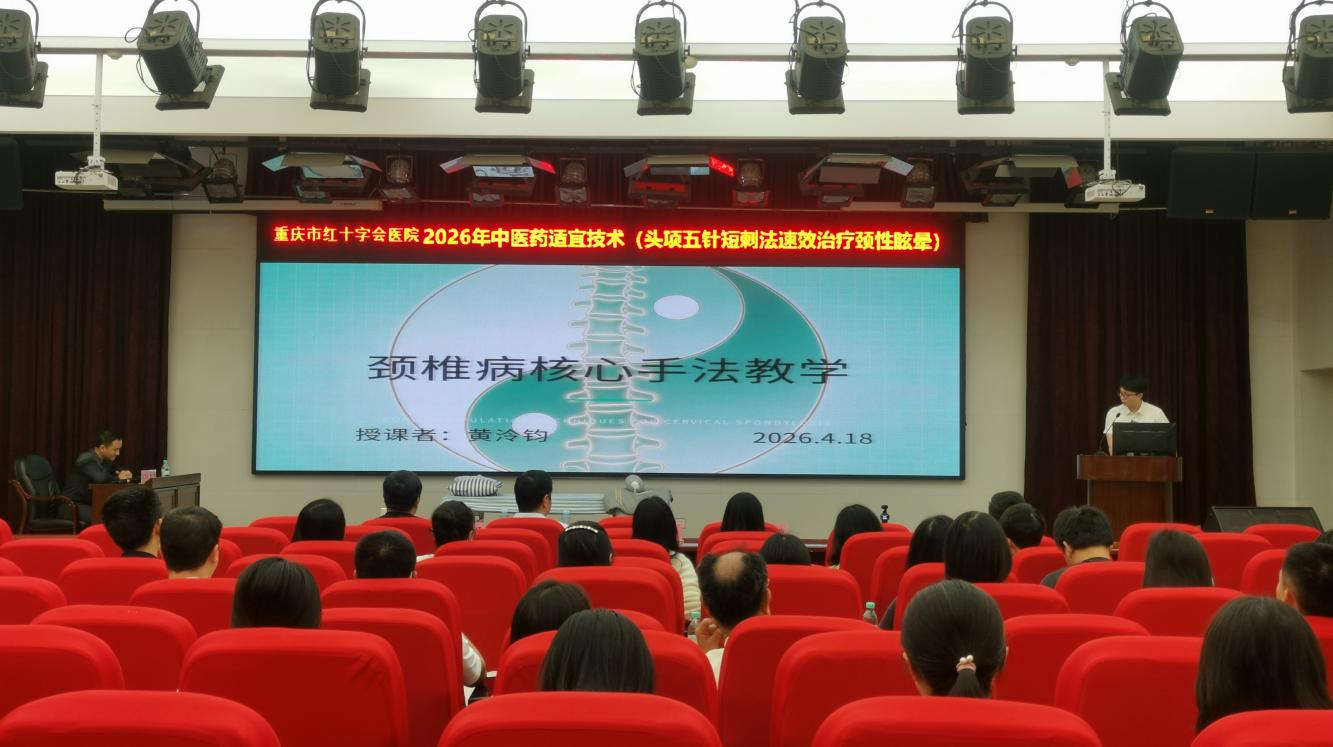 春风送暖,万物竟发。为深入贯彻《重庆市中医药振兴发展重大工程实施方案》精神,全面落实2026年中医药适宜技术推广任务,切实提升基层中医药服务能力,4月18日,由重庆市红十字会医院主办的“2026年中医药适宜技术(头项五针短刺法速效治疗颈性眩晕)推广培训班”在医院学术报告厅隆重举行。