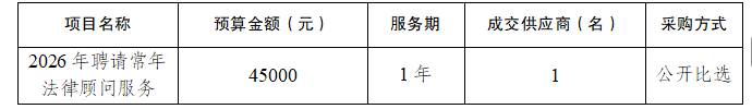 重庆市红十字会医院(江北区人民医院)聘请常年法律顾问服务执行公开比选,现邀请具有能力提供本采购项目的合格供应商参与公开比选。